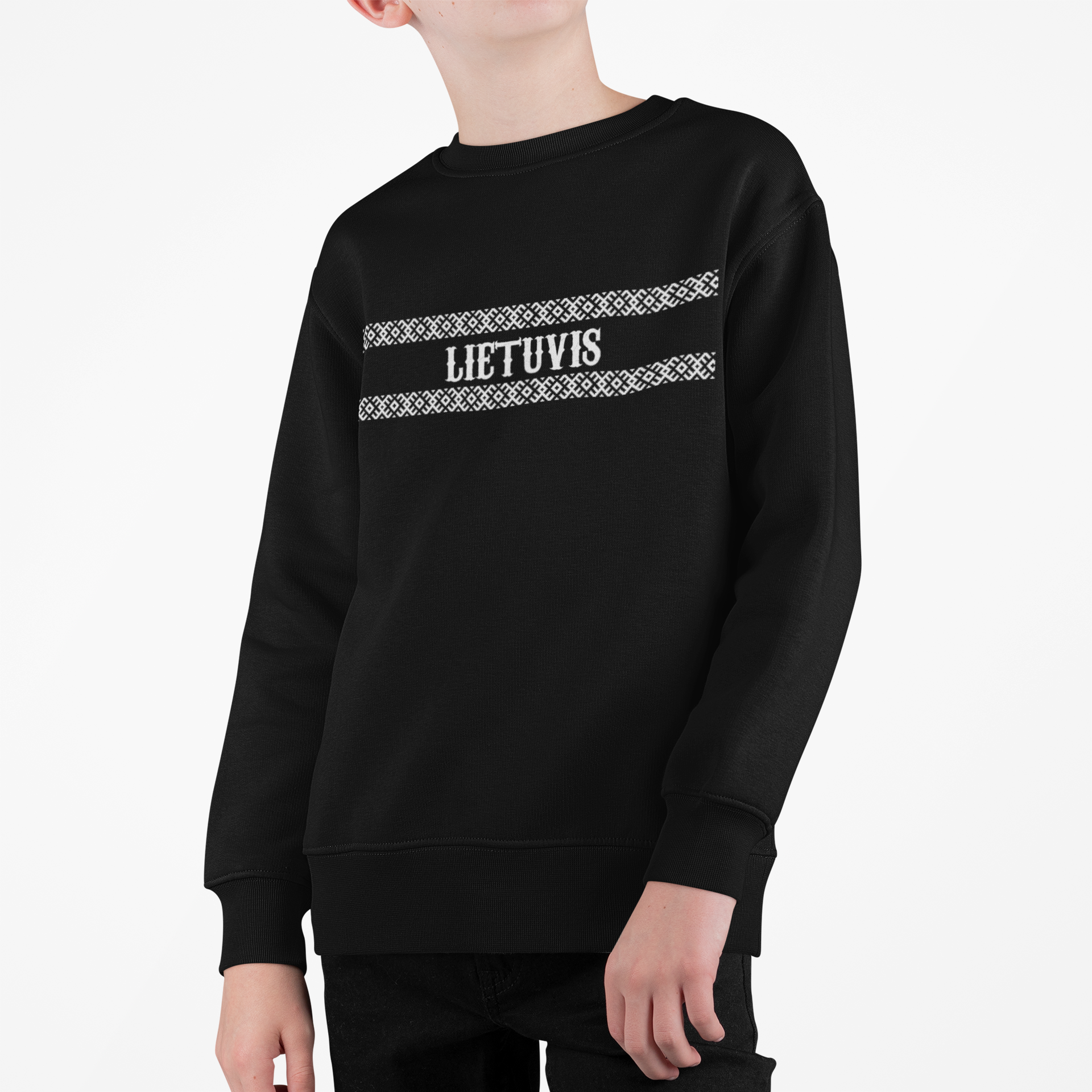 Vaikiškas juodas džemperis "Lietuvis su tautine juosta"