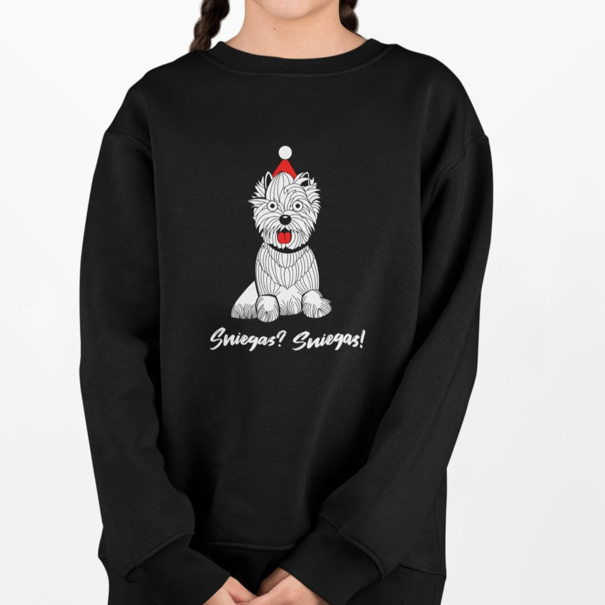 Vaikiškas juodas kalėdinis džemperis "Sniegas? Sniegas!"