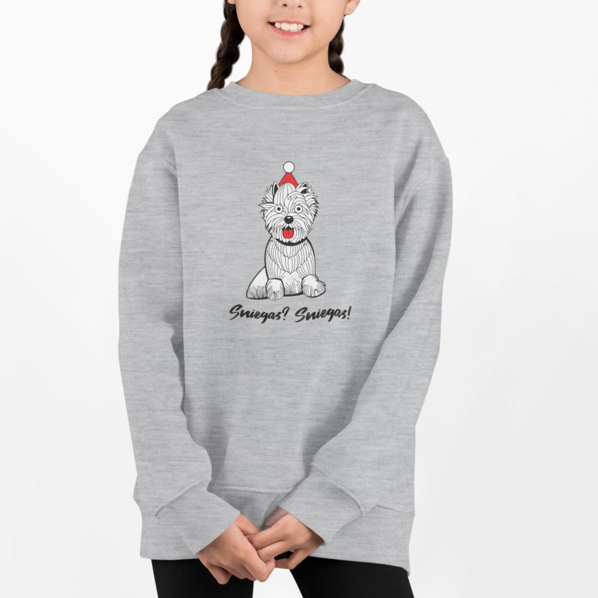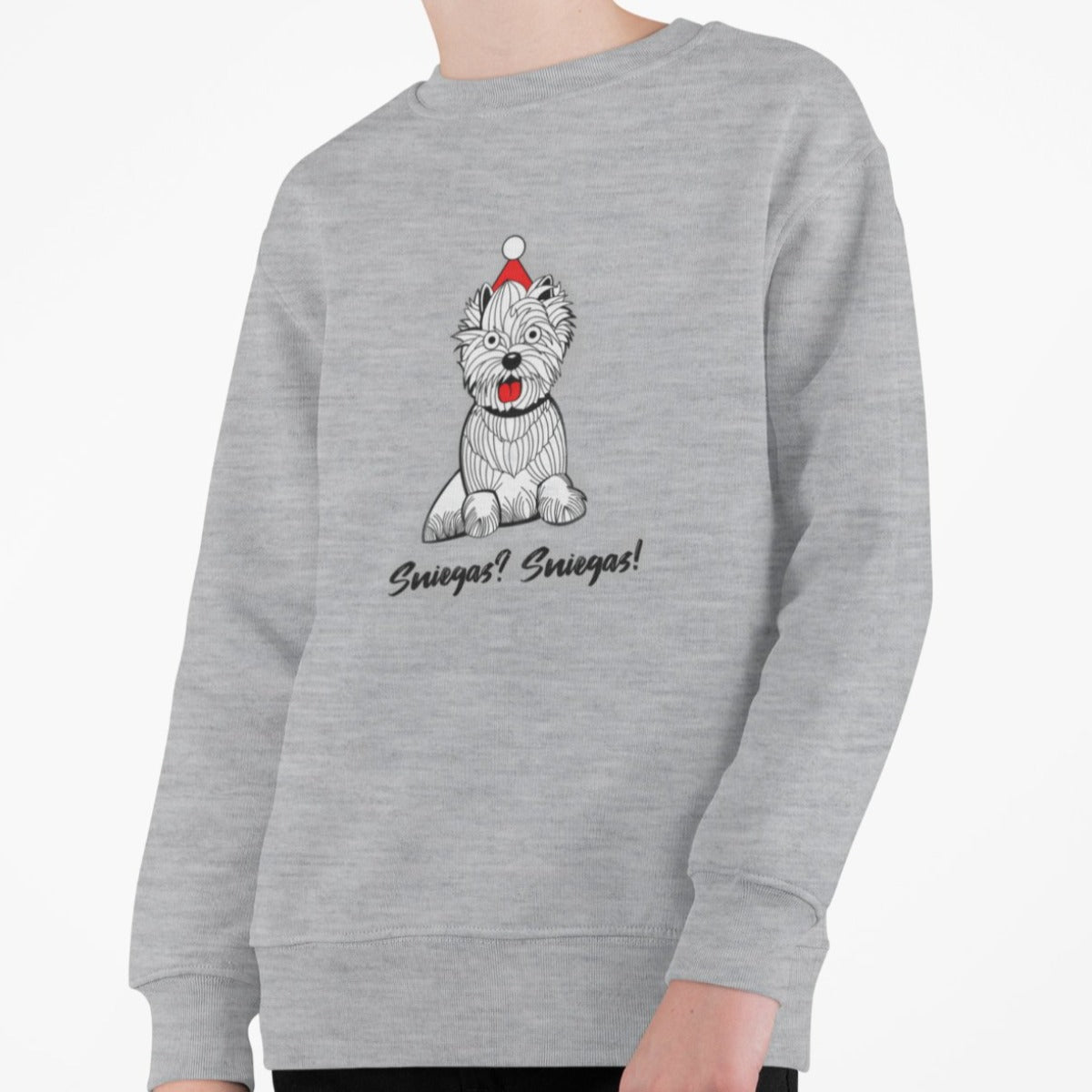 Vaikiškas pilkas melanžinis kalėdinis džemperis "Sniegas? Sniegas!"
