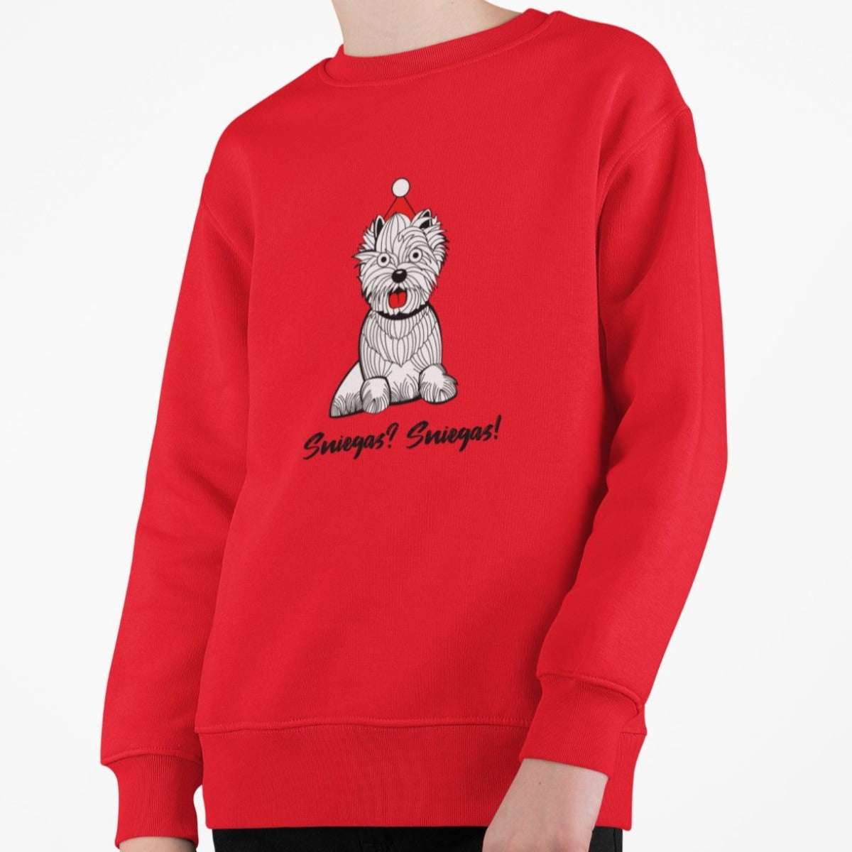 Vaikiškas raudonas kalėdinis džemperis "Sniegas? Sniegas!"