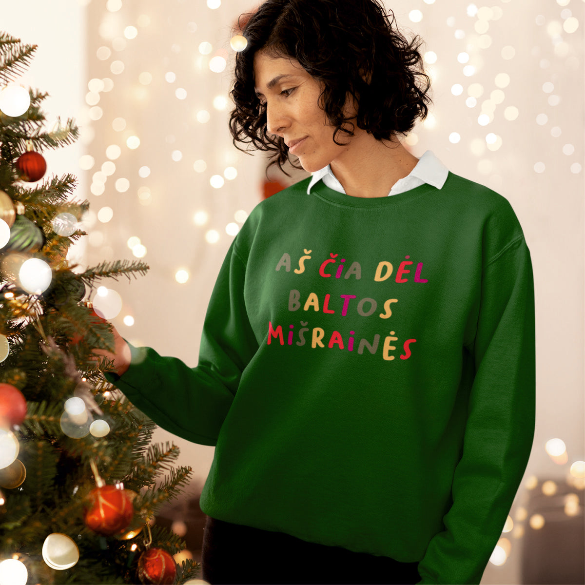 Tamsiai žalias kalėdinis UNISEX džemperis "Aš čia dėl baltos mišrainės"