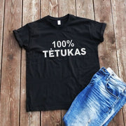 Medvilniniai juodos spalvos marškinėliai su užrašu "100% tėtukas" - puiki dovana tėvo dienos proga.