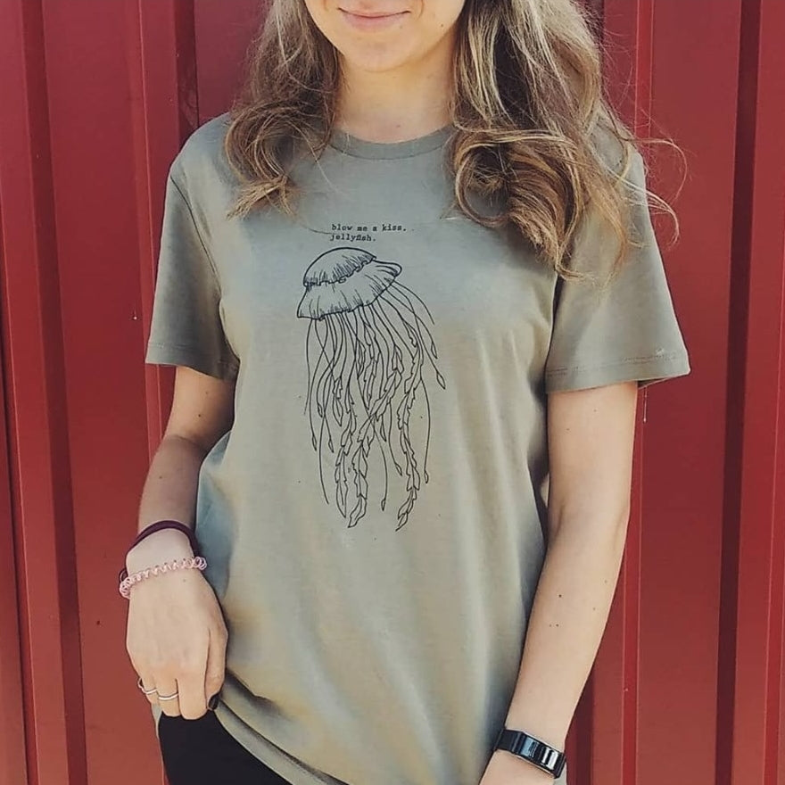 Khaki 100% medvilnės marškinėliai "Blow me a kiss"