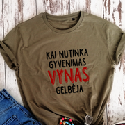 Khaki 100% medvilnės marškinėliai "Kai nutinka gyvenimas"
