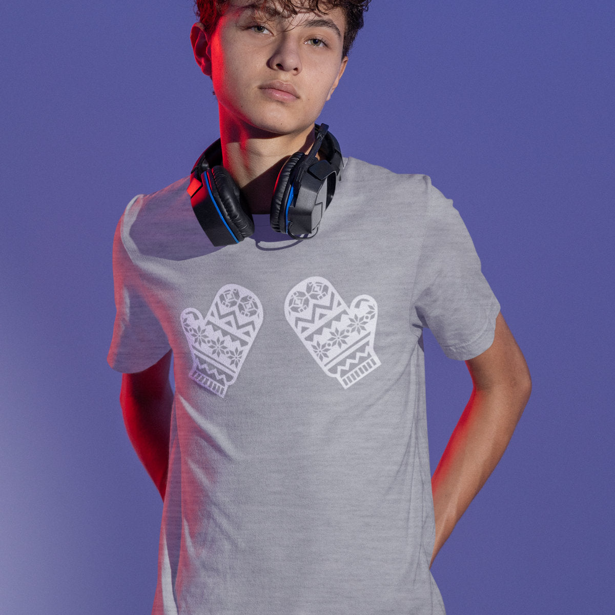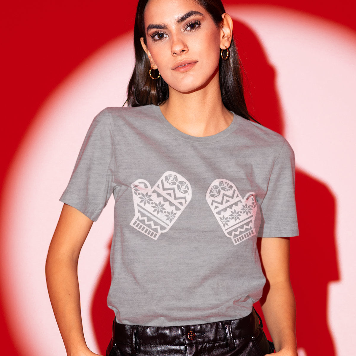 Pilki melanžiniai UNISEX kalėdiniai marškinėliai "Pirštinaitės"