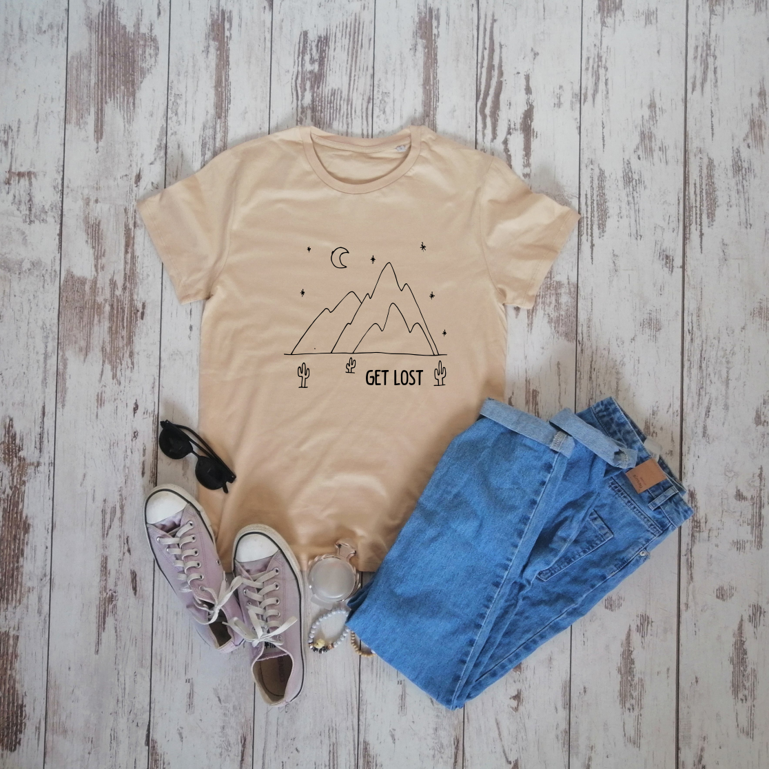 Smėlio spalvos ekologiškos medvilnės marškinėliai "Get lost"