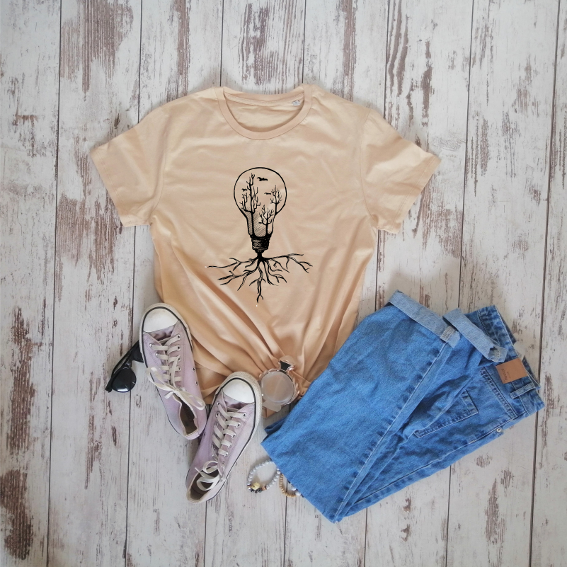 Smėlio spalvos ekologiškos medvilnės marškinėliai "Miškas"