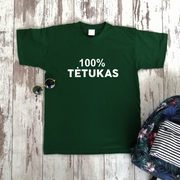 Medvilniniai aukštos kokybės, žalios spalvos marškinėliai su užrašu "100% tėtukas".