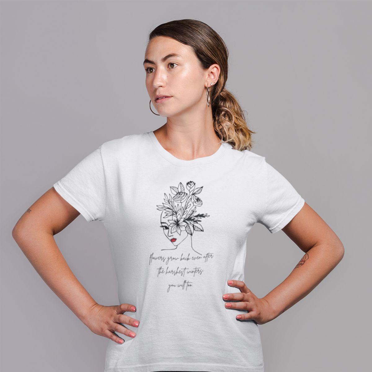 Balti medvilniniai marškinėliai "Flowers grow back"