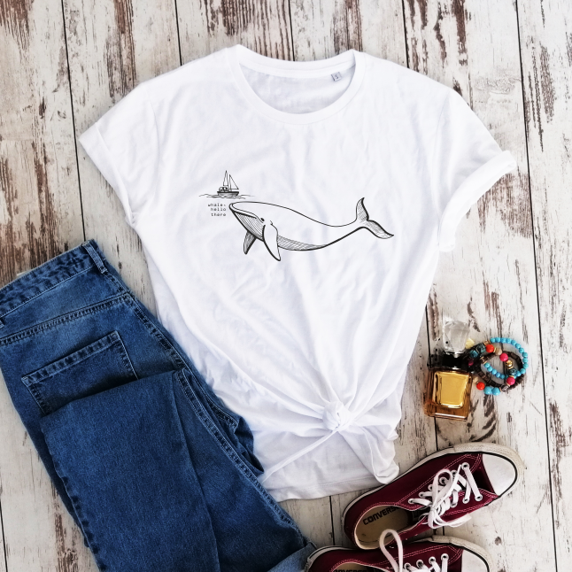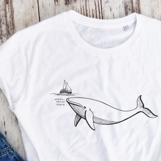 Balti 100% medvilnės marškinėliai "Banginis"
