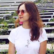 Balti 100% medvilnės marškinėliai "Gėlė"