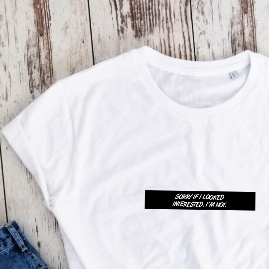 Balti ekologiškos medvilnės marškinėliai "Sorry"