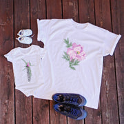 Balti marškinėliai ir bodis "Bijūnai“. Komplektas 2 vnt.