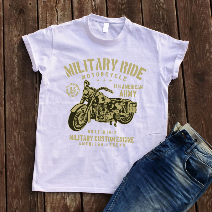 Balti marškinėliai "MILITARY RIDE“