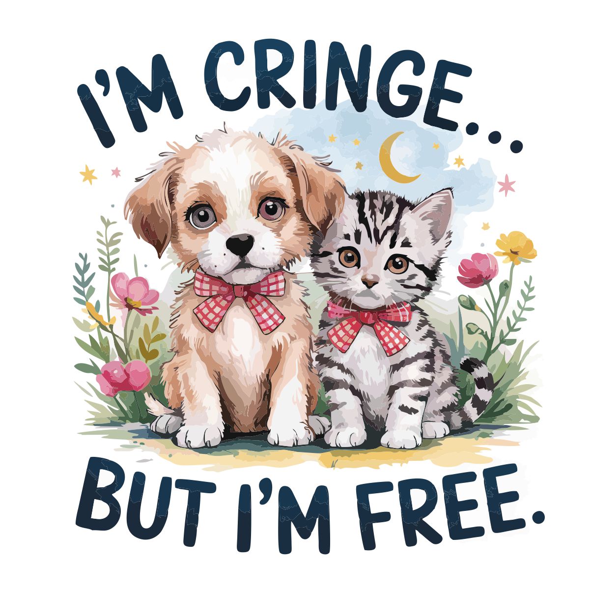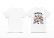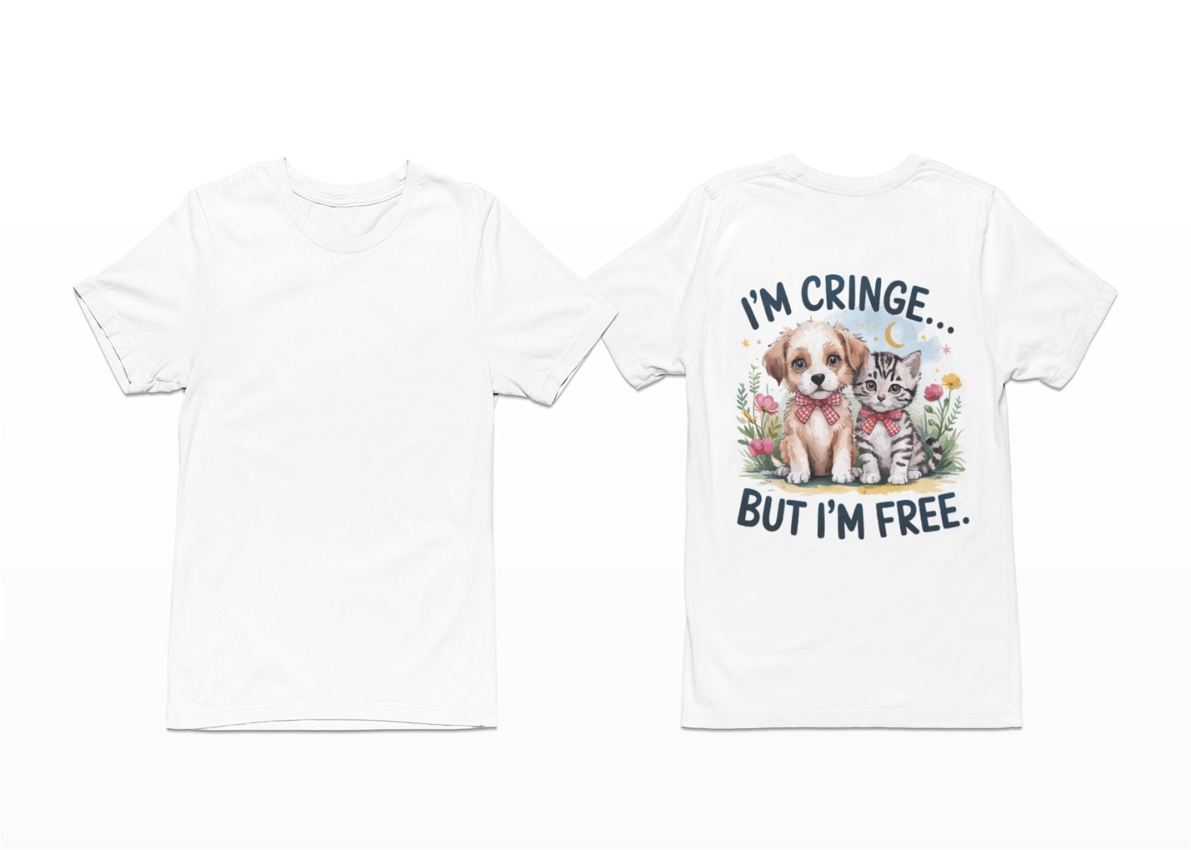 Balti marškinėliai su spauda ant nugaros "I'm cringe“