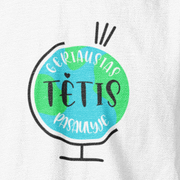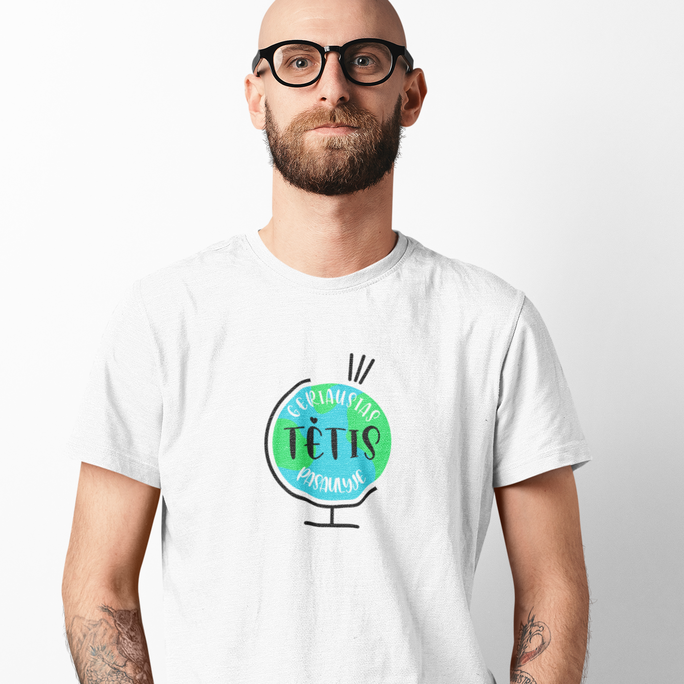 Balti marškinėliai su užrašu "Geriausias tėtis pasaulyje"