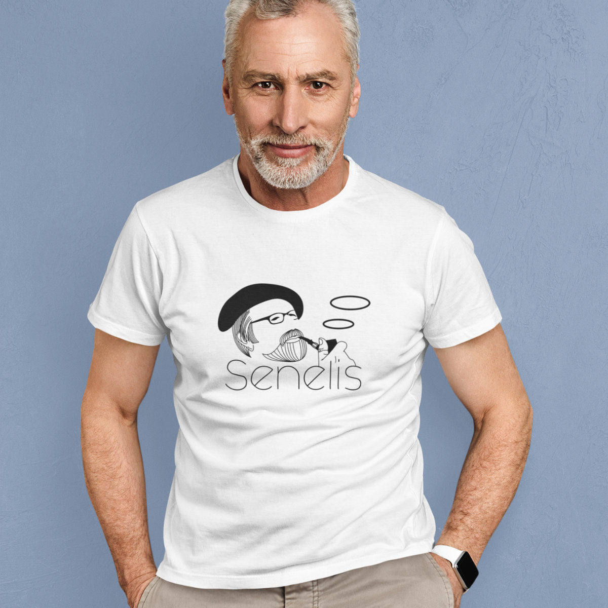Balti marškinėliai su užrašu "Senelis su pypke"