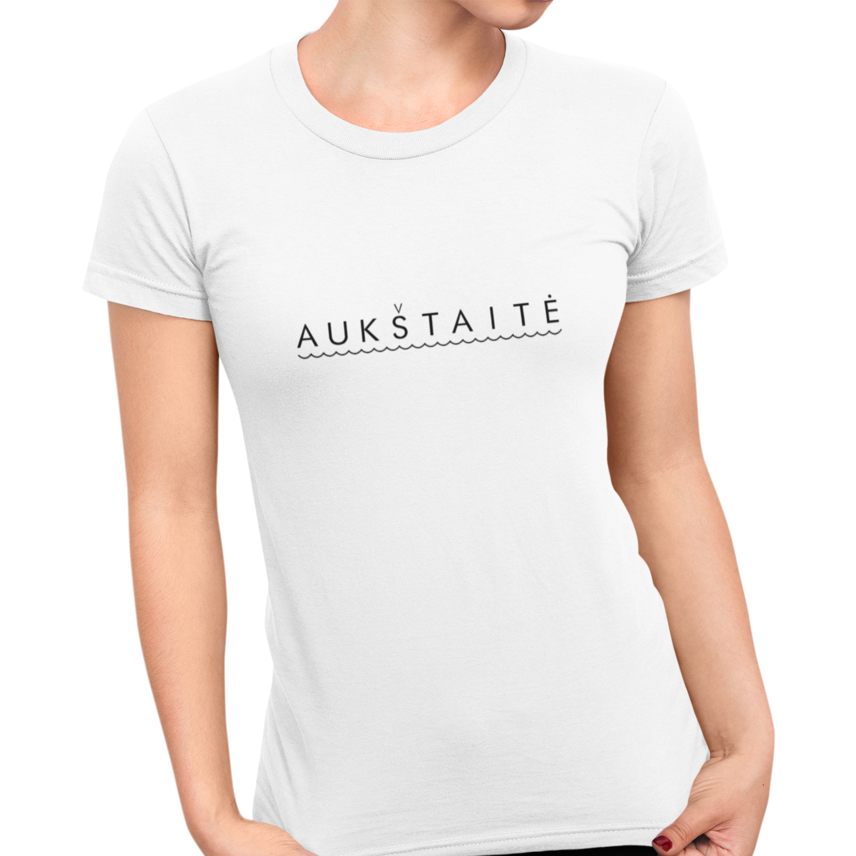 Balti moteriški marškinėliai "Aukštaitė"