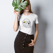 Balti moteriški marškinėliai "Geometrinė kaukolė"