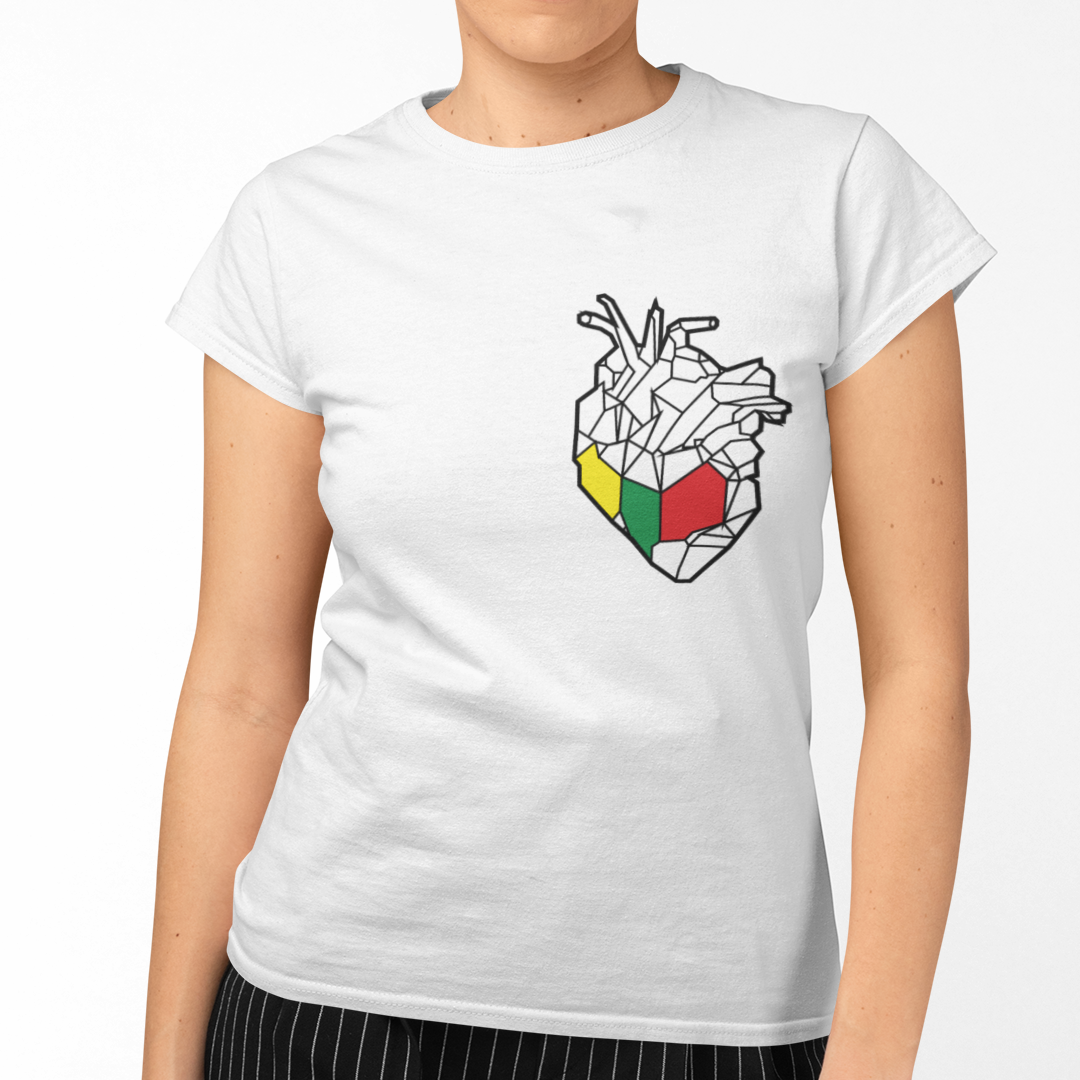 Balti moteriški marškinėliai "Geometrinė širdis"