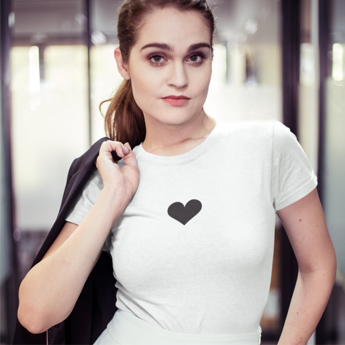Balti moteriški marškinėliai "Juoda širdelė" ŠIURPNAČIO PASIŪLYMAS (S,M)