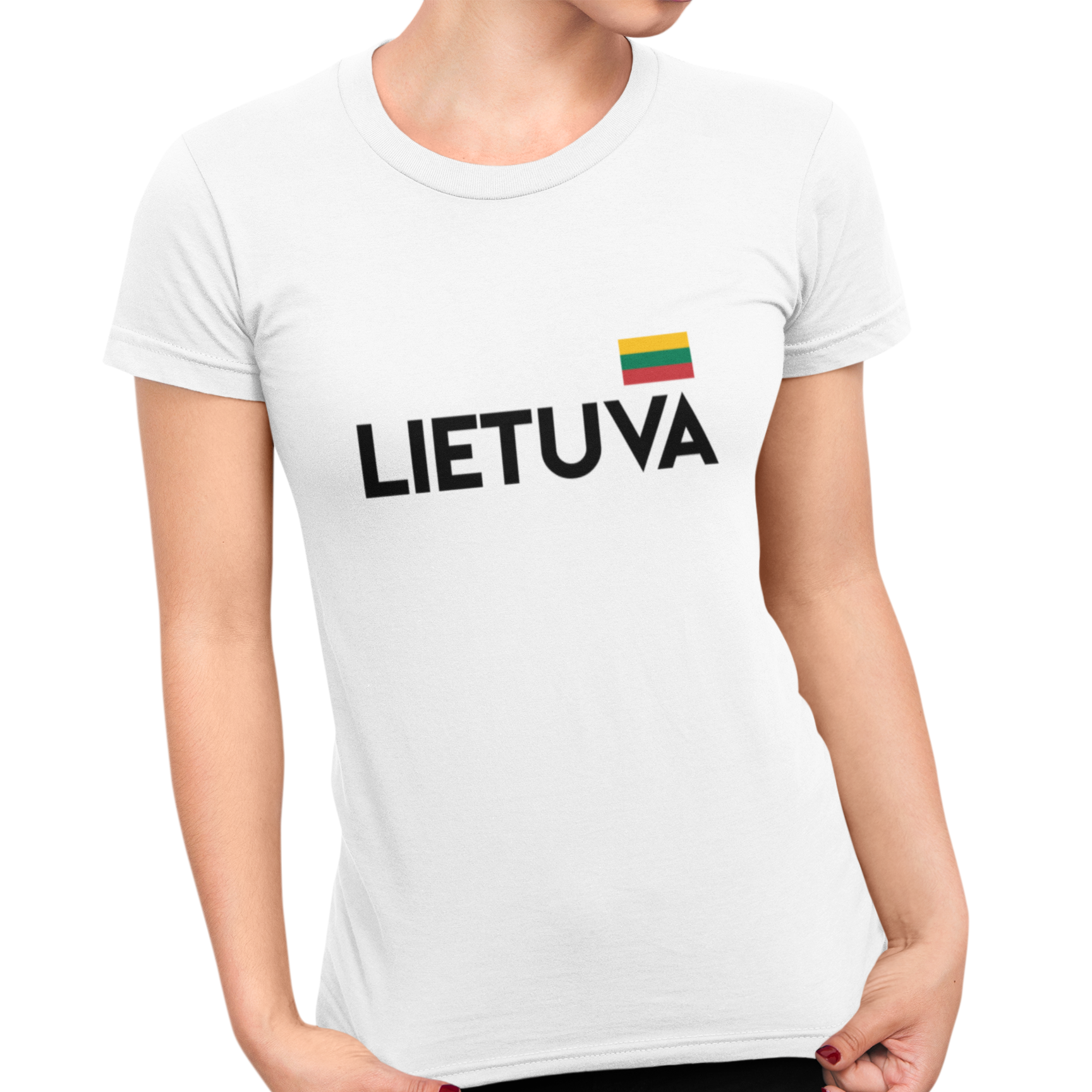 Balti moteriški marškinėliai "Lietuva su maža vėliava"