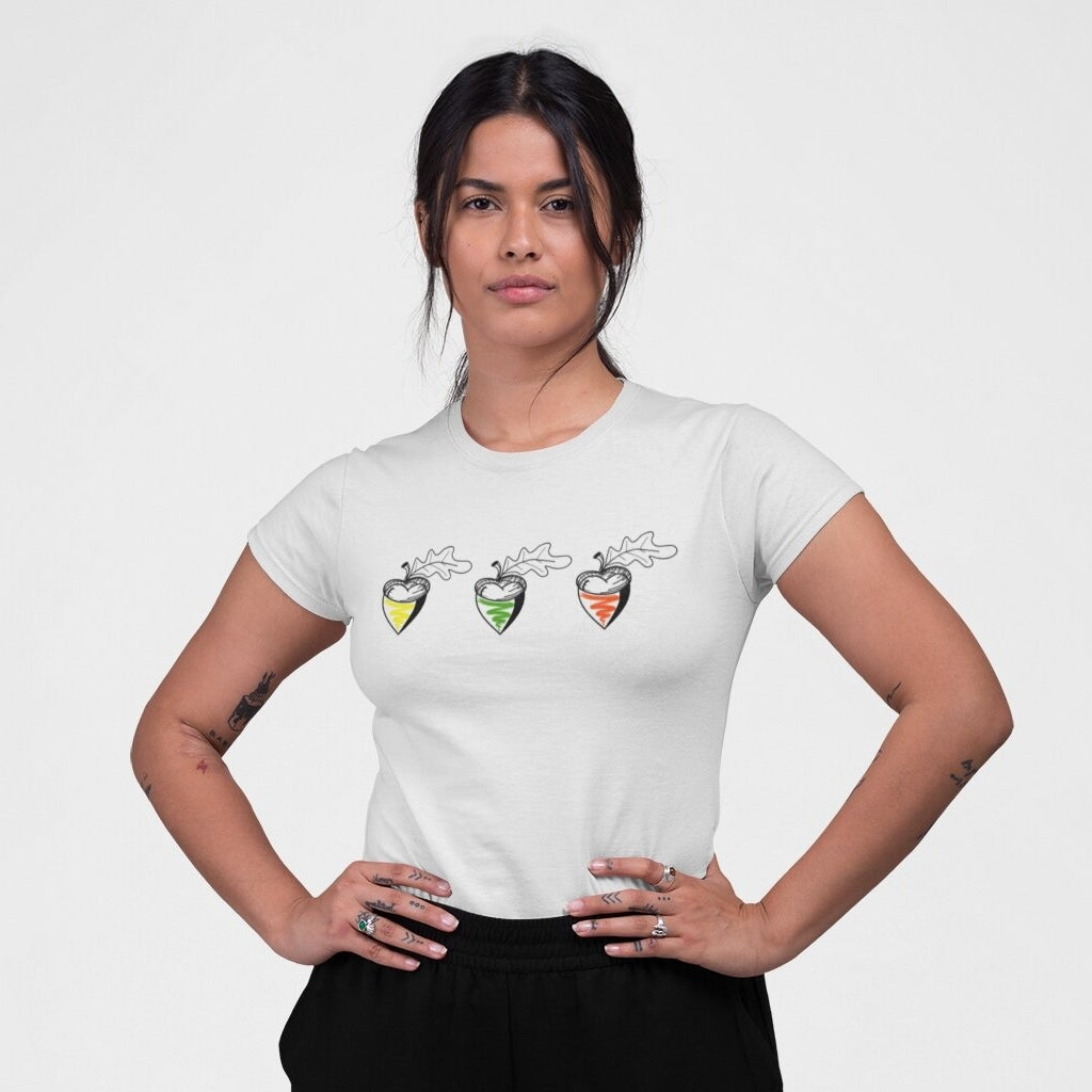Balti moteriški marškinėliai "Lietuviškos gilės"