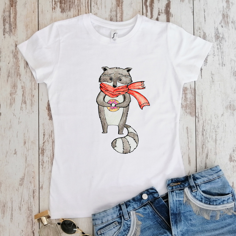 Balti moteriški marškinėliai "Meškėnas"