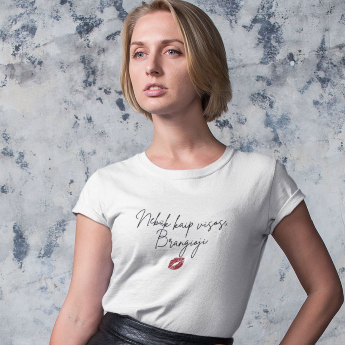 Balti moteriški marškinėliai "Nebūk kaip visos“