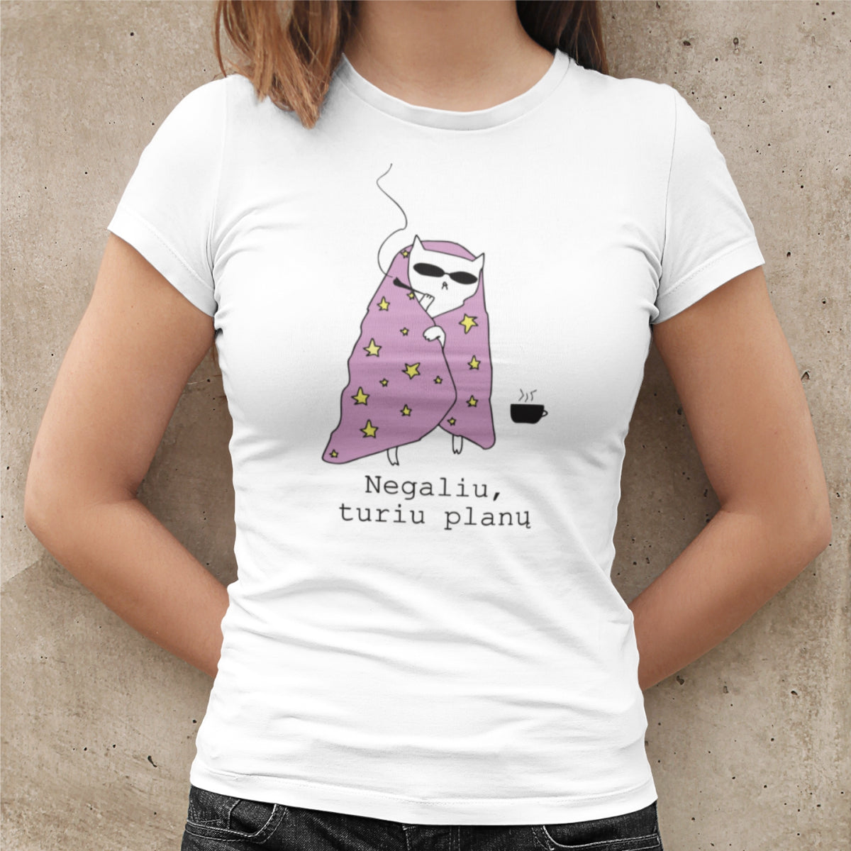 Balti moteriški marškinėliai "Negaliu, turiu planų"