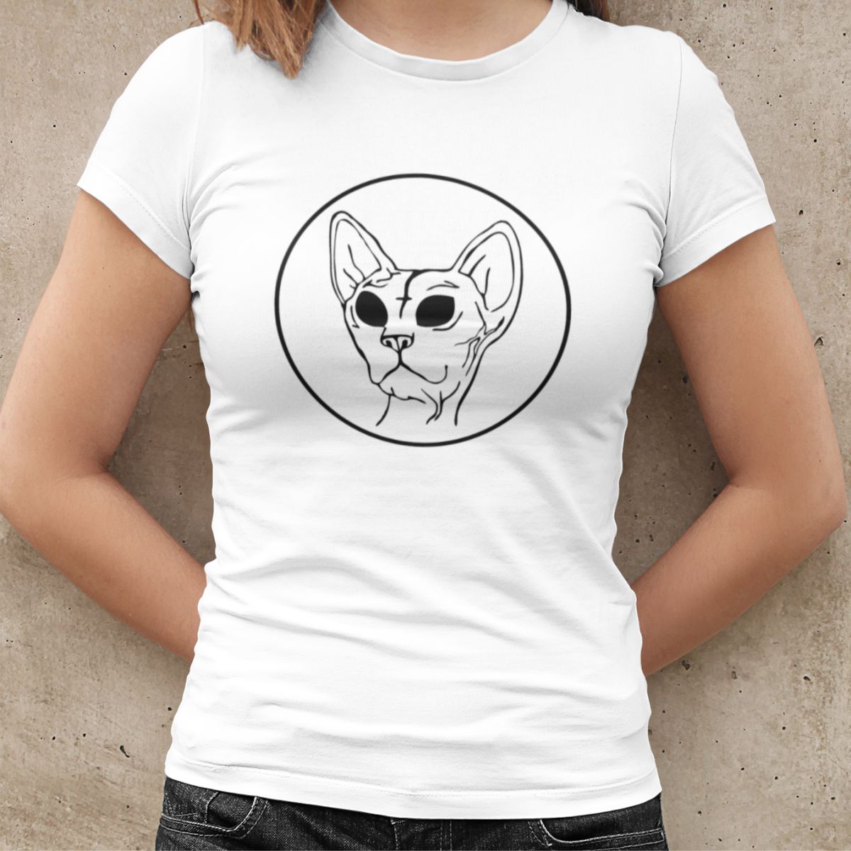 Balti moteriški marškinėliai "Sfinksas skritulyje"