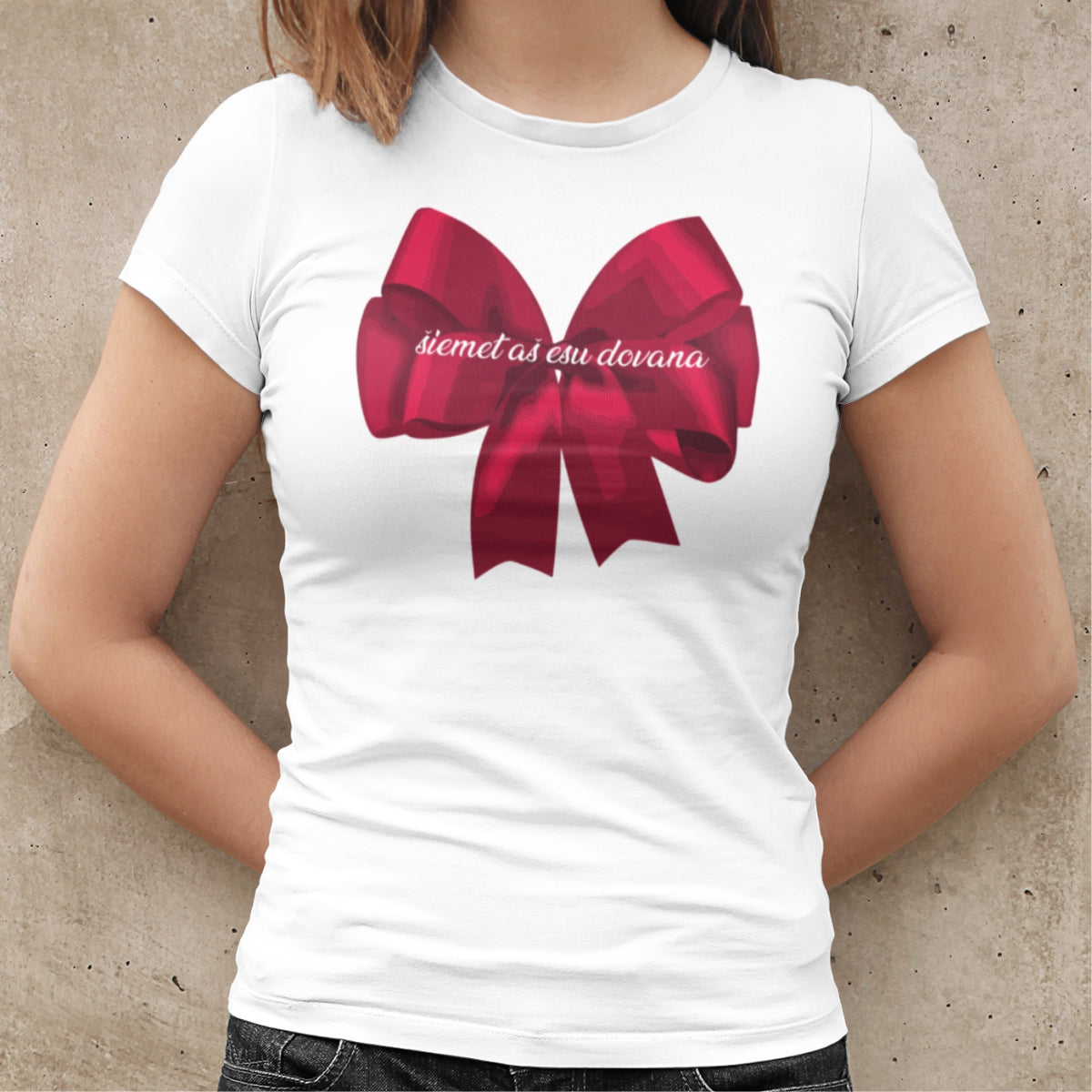 Balti moteriški marškinėliai "Šiemet aš esu dovana"