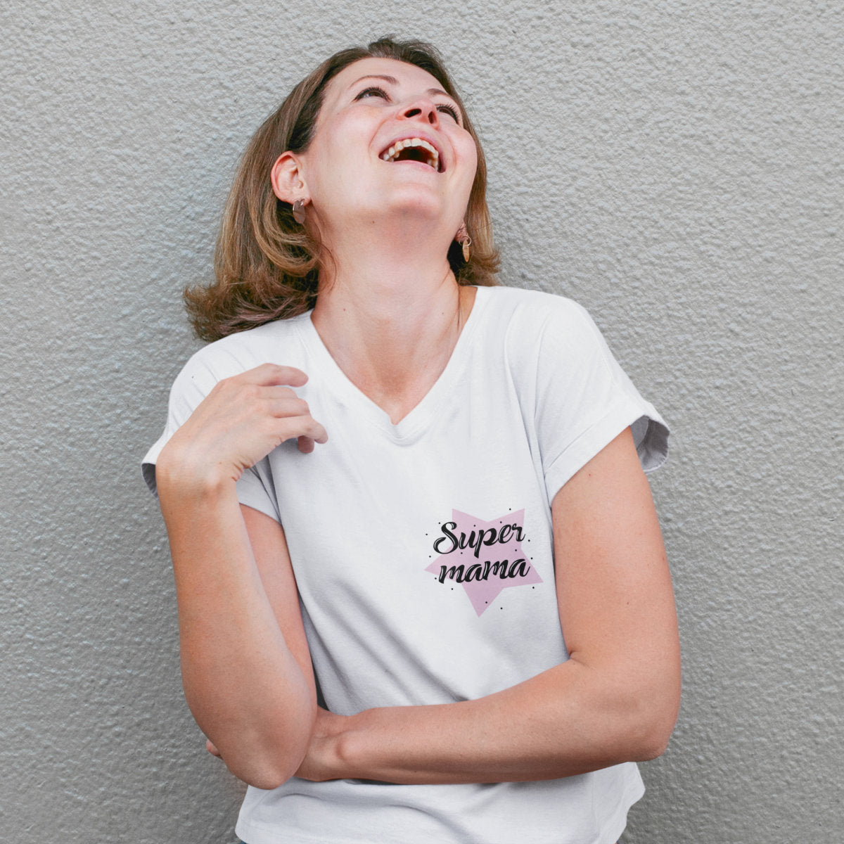 Balti moteriški marškinėliai "Super mama su žvaigžde"