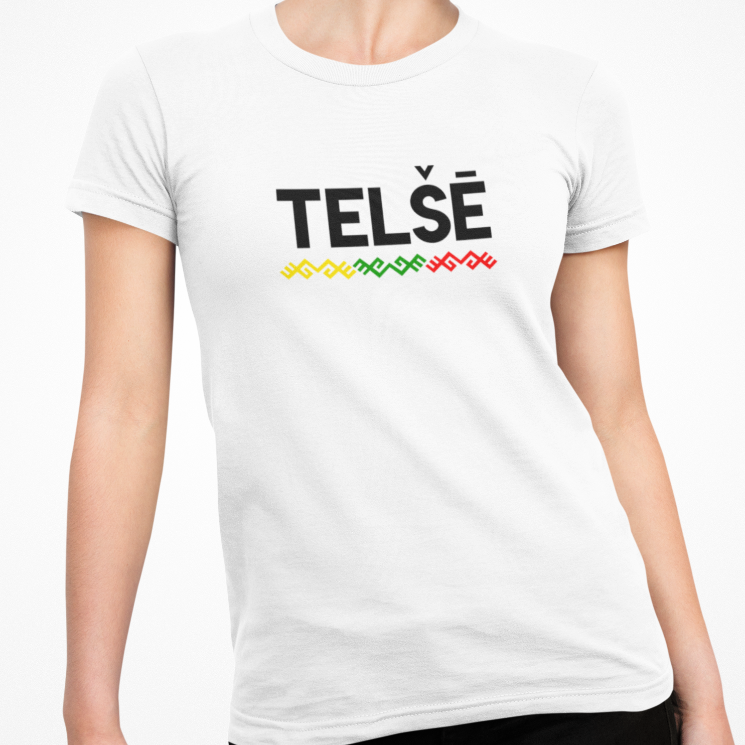Balti moteriški marškinėliai ''Telše su tautiška juosta"