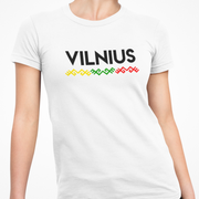 Balti moteriški marškinėliai ''Vilnius su tautiška juosta"