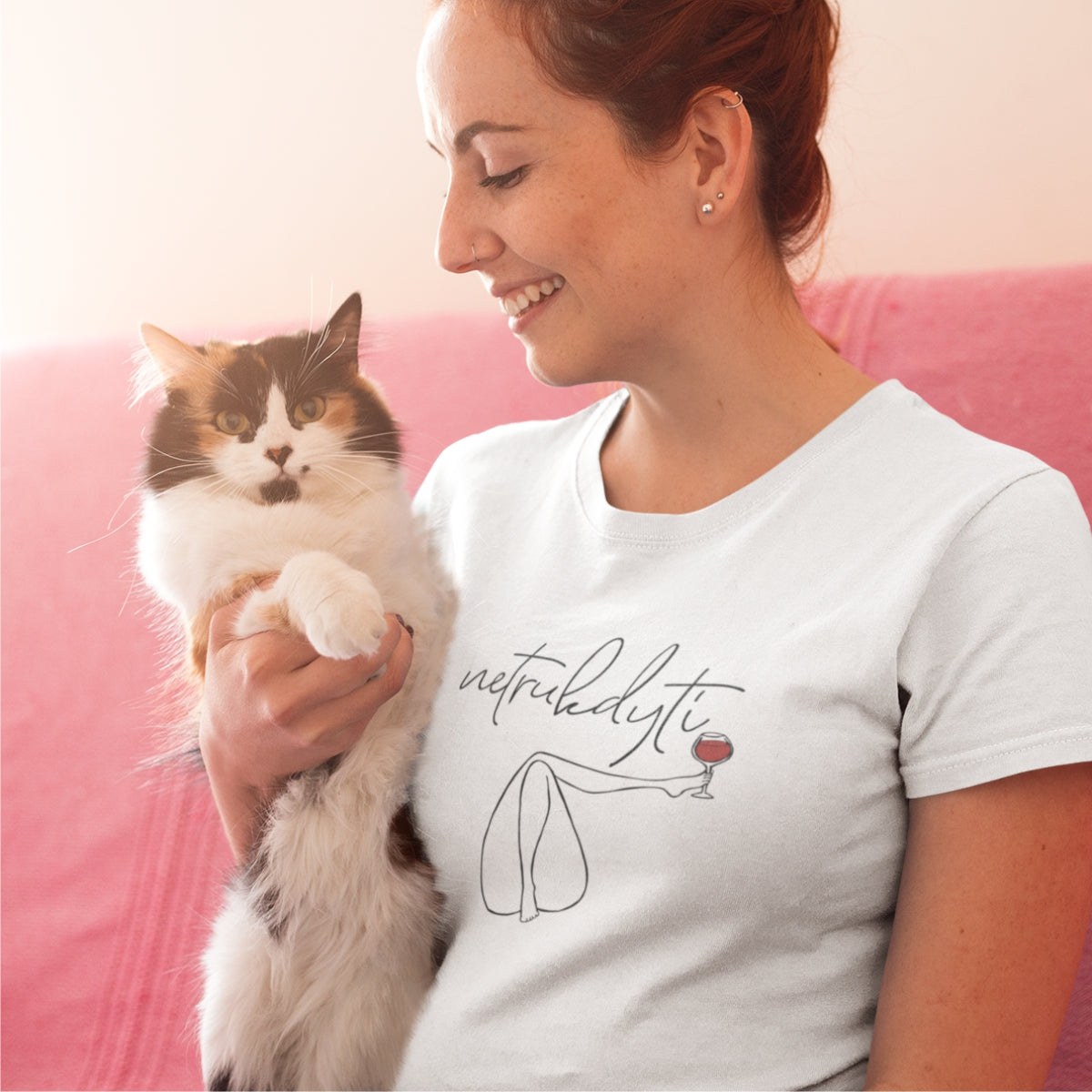 Balti moteriški medvilniniai marškinėliai "Netrukdyti"
