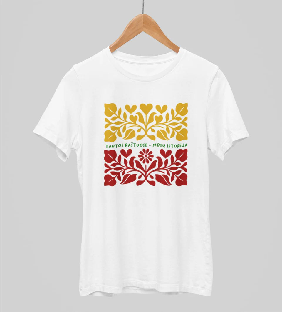 Balti Premium unisex marškinėliai "Tautos raštuose" Pagaminta prekė (L dydis)