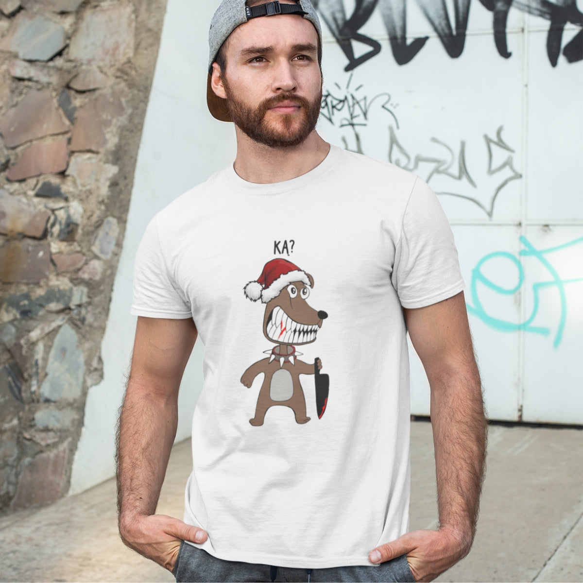 Balti UNISEX kalėdiniai marškinėliai "Ką šuniukas Kalėdos"