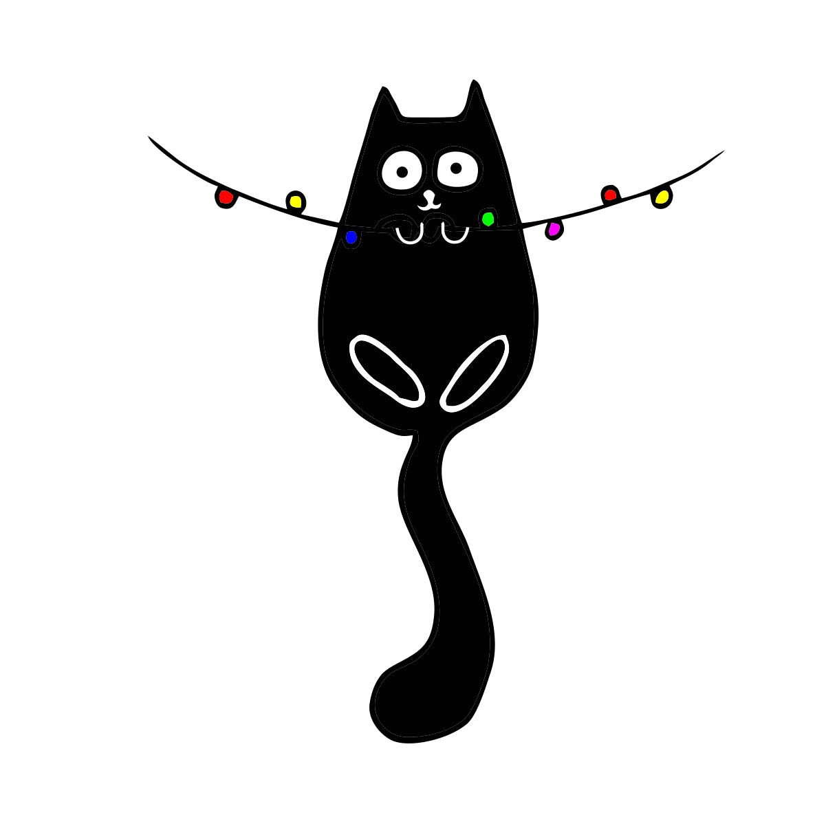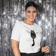 Balti UNISEX kalėdiniai marškinėliai "Katinėlis su girlianda"