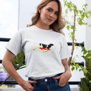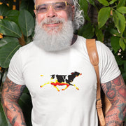 Balti UNISEX marškinėliai "Bėganti karvė"