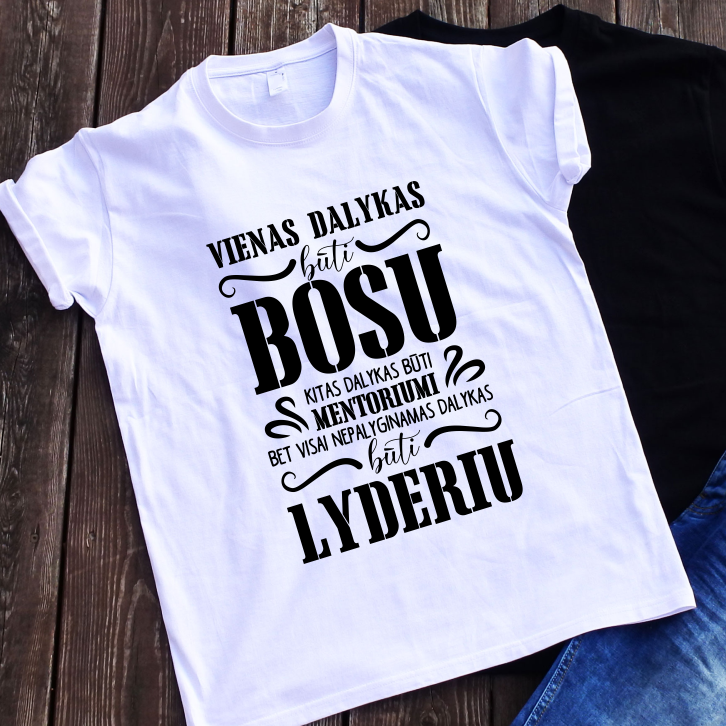 Balti UNISEX marškinėliai "Bosas - lyderis"