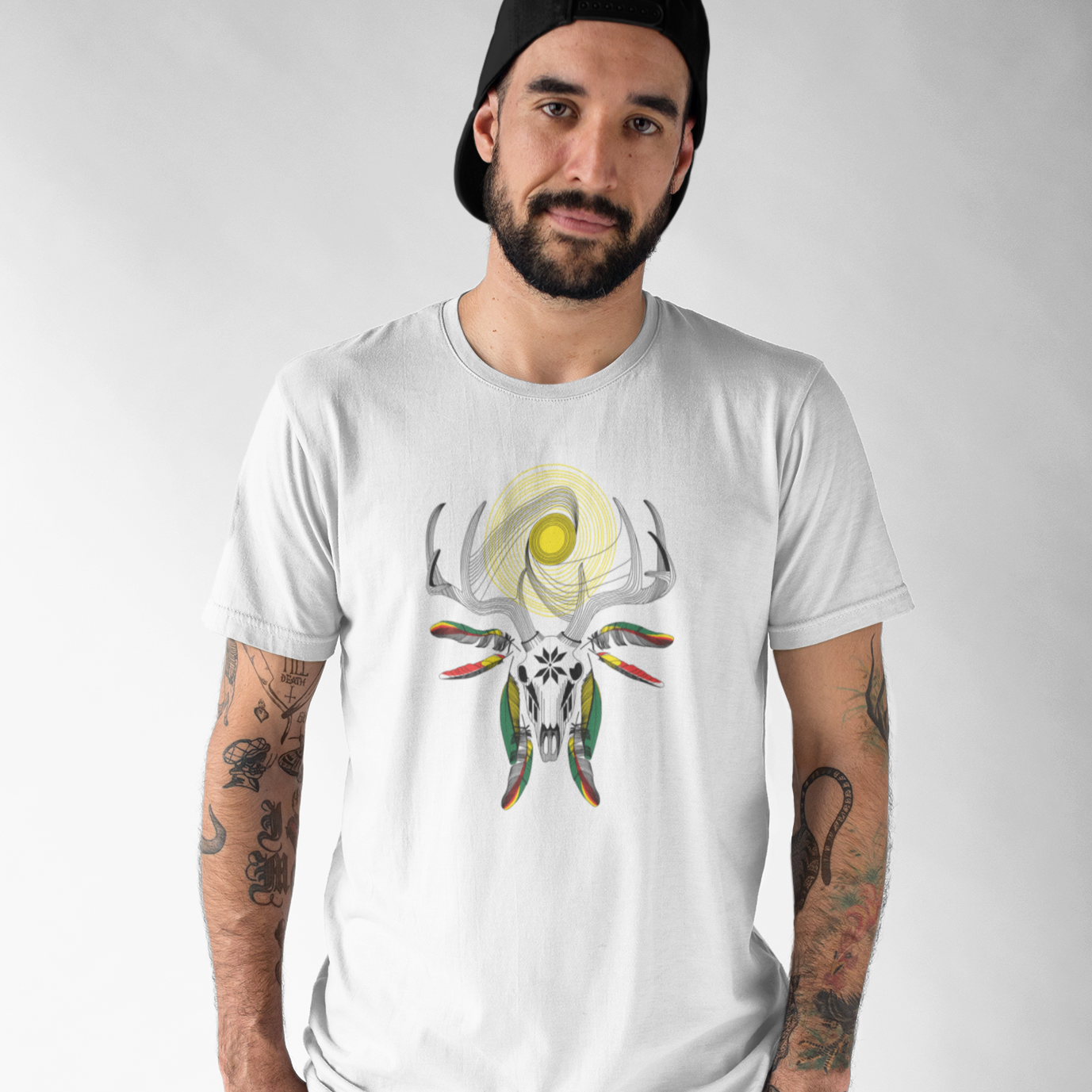Balti UNISEX marškinėliai "Elnias devyniaragis"
