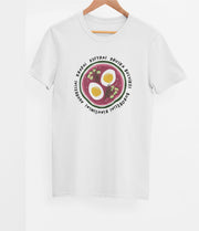 Balti UNISEX marškinėliai "Iš ko susideda laimė"