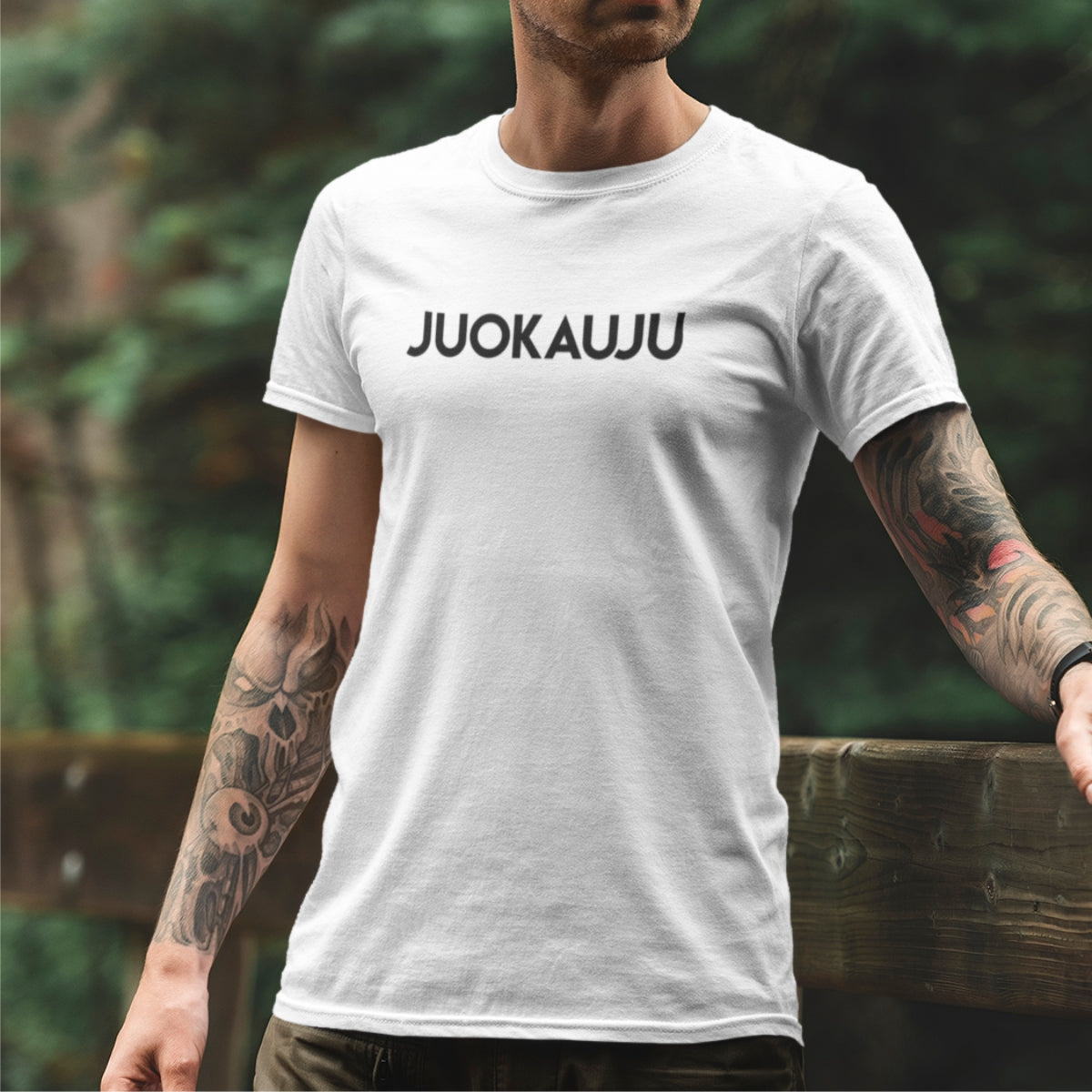 Balti UNISEX marškinėliai "JUOKAUJU"