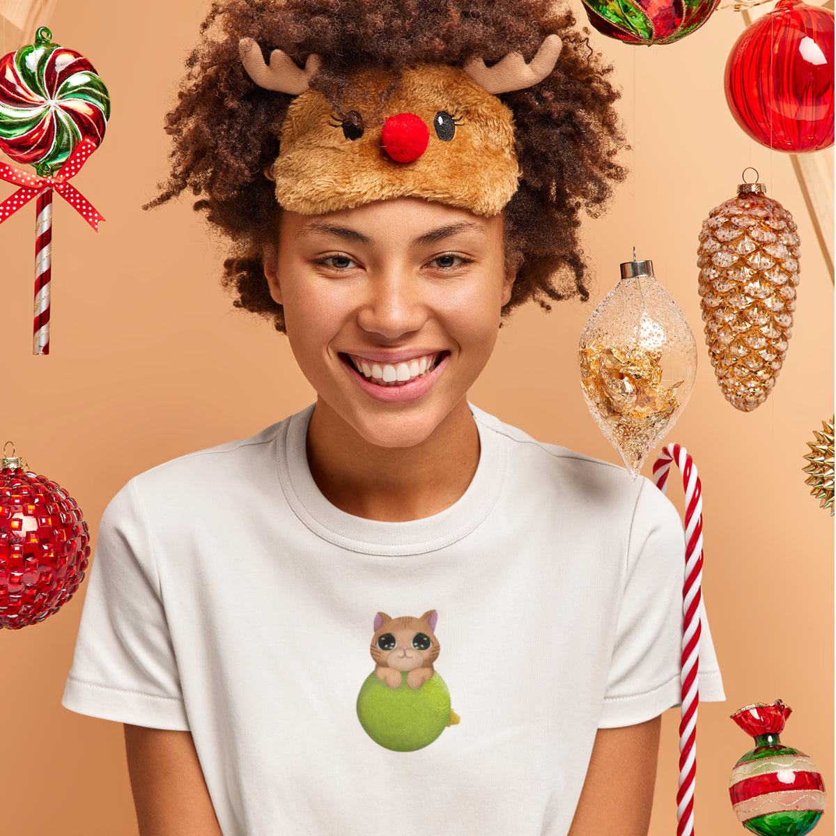 Balti unisex marškinėliai "Katinėlis su kamuoliuku"