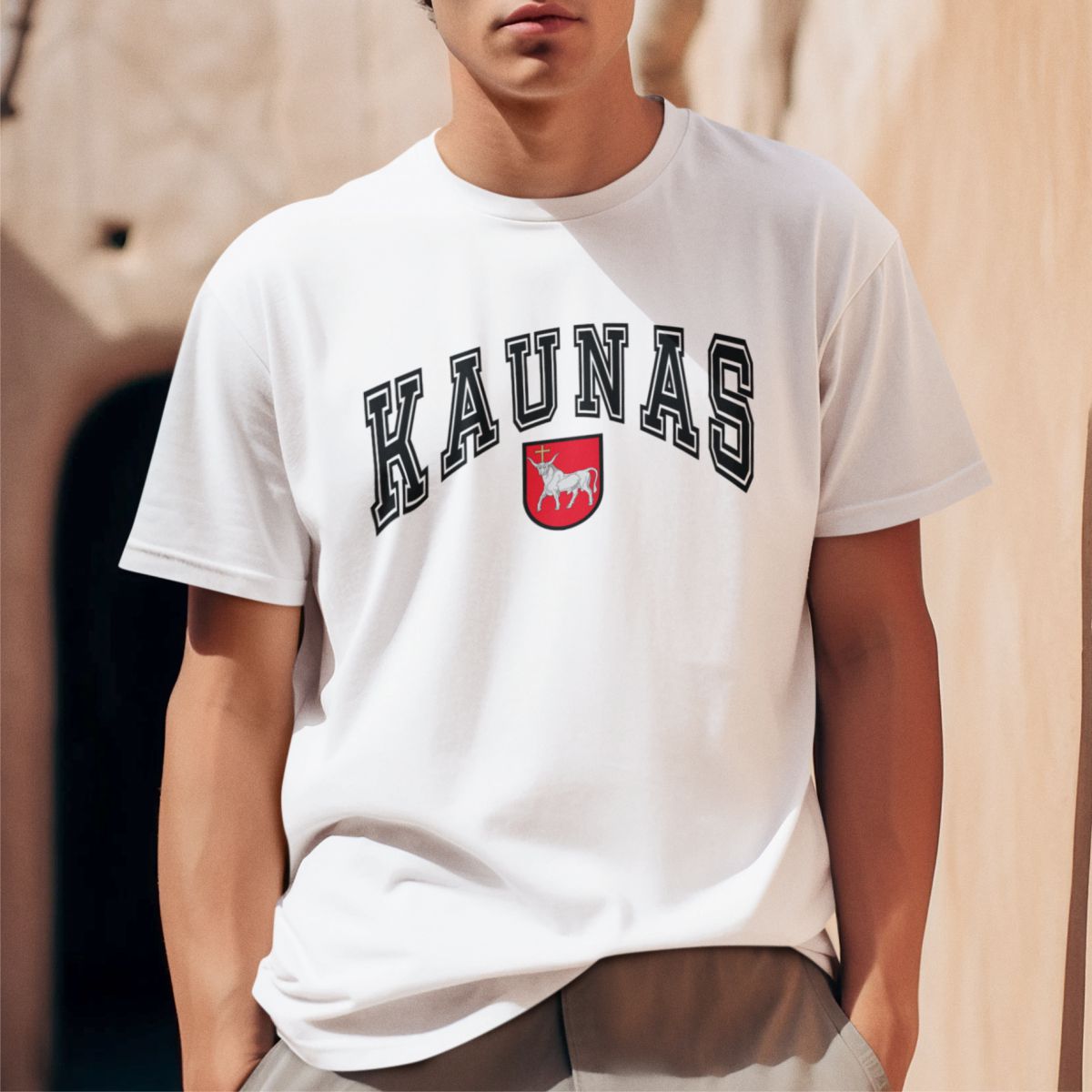 Balti UNISEX marškinėliai "Kaunas su herbu"