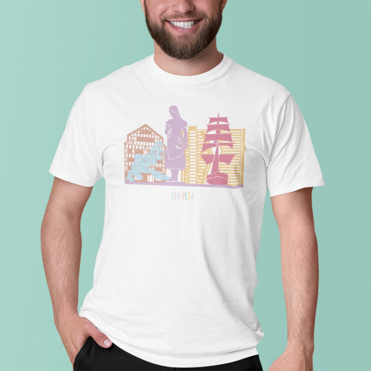 Balti UNISEX marškinėliai "Klaipėda pastelėje"