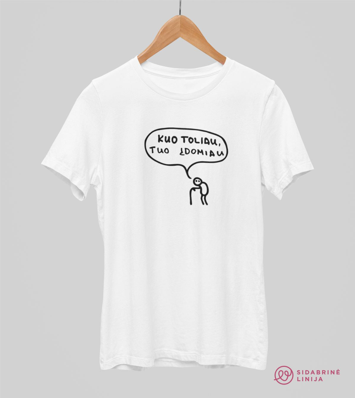 Balti UNISEX marškinėliai "Kuo toliau, tuo įdomiau“