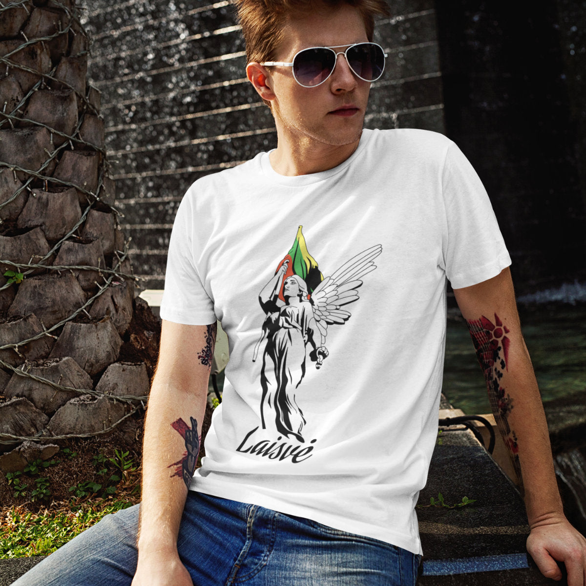 Balti UNISEX marškinėliai "Laisvės statula“