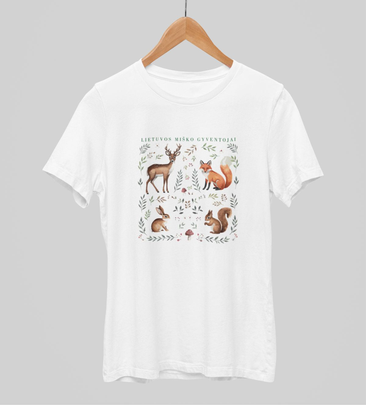 Balti unisex marškinėliai "Lietuvos miško gyventojai"